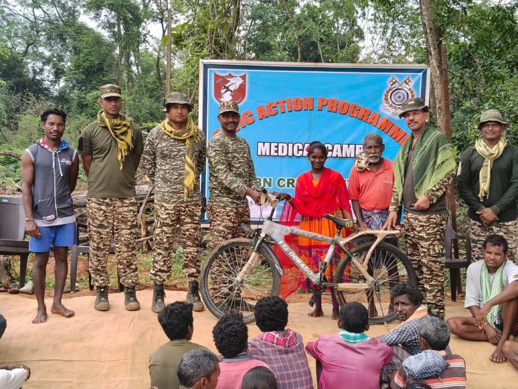 कार्यक्रम में ग्रामीणों के लिए साइकिल, रेडियो सेट, साड़ियाँ और कंबल वितरित किए गए। साथ ही डॉ. अमिताभ साहू (सीएमओ, 217वीं वाहिनी) द्वारा चिकित्सा शिविर का आयोजन किया गया, जिसमें ग्रामीणों की स्वास्थ्य जांच कर आवश्यक दवाएँ निःशुल्क उपलब्ध कराई गईं। डॉक्टर ने बीमारियों की रोकथाम एवं बचाव संबंधी जानकारी भी साझा की।
