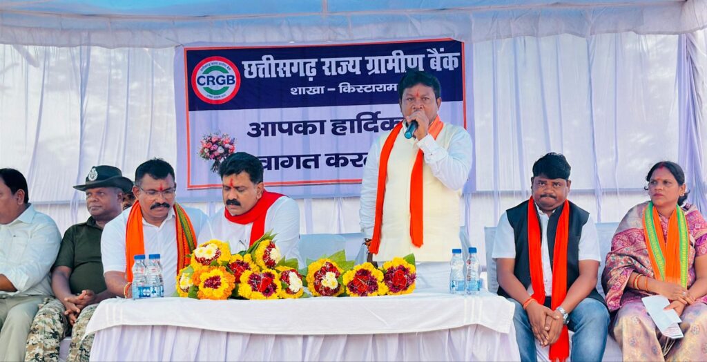 राज्य के अंतिम छोर कोंटा विकासखंड के किस्टाराम ग्राम पंचायत में उपमुख्यमंत्री व सांसद ने छग ग्रामीण बैंक के नवीन शाखा का लोकार्पण जनपद अध्यक्ष श्रीमती कुसुमलता कवासी के हाथों कराया । वनांचल क्षेत्र के तकरीबन आठ से दस पंचायतों को मिलने वाली इस बैंकिंग सुविधा से क्षेत्र के लोगों बड़ी राहत के साथ विकास की एक नई राह और मिल गई । लोकार्पण कार्यक्रम के दौरान बड़ी संख्या में मौजूद ग्रामीणों से उपमुख्यमंत्री और सांसद ने भेंटकर उनकी कुशलक्षेम पूछा और शासकीय योजनाओं के लाभ के विषय में जानकारी ली। ग्रामीणों ने बताया कि उन्हें शासकीय योजनाओं का पूरा लाभ मिल रहा है। नई बैंक शाखा से आठ ग्राम पंचायतों के 42 गांव और 10 हज़ार से अधिक लोग लाभान्वित होंगे। उपमुख्यमंत्री ने शाखा का निरीक्षण कर आवश्यक दिशा-निर्देश दिए और कहा कि अब ग्रामीणों को डिजिटल बैंकिंग, लेन-देन और शासकीय योजनाओं की राशि प्राप्त करने में किसी प्रकार की परेशानी नहीं होगी ।